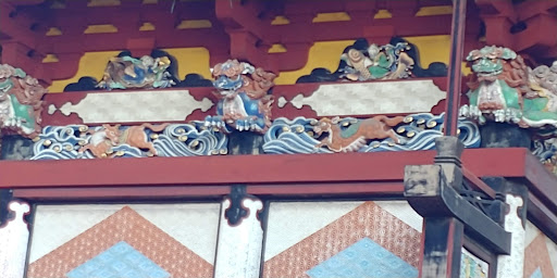 ●御本殿の彫刻特徴 第一に、 建物を未来に継承させるため 「水の恵みと水神」を配している。 そ の代表なものとして、 龍 水の中を泳 ぐ鯉・海水・海獣・犀・玄武などがある。 第二に、 神聖な霊獣・霊鳥を配し神様 の力の広大さを表している。 麒麟・貘・白象王・虎・獅子 (ライオン)・鳳凰・鸞・鶴 ・鷹がある。 第三に、 限りある人生の理想の生き方 として、「仙人」 を配している。 仙人 は十ヵ所に配され、瓢箪から駒を出す 仙人・酒を楽しみ魂を生む仙人・お香 を薫く仙人・鯉に乗り病気を治す琴高仙人等がある。 圧巻は、東・西・北面の大壁地紋彫で、二重のダイヤモンド...