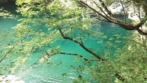 日差しの角度や天候によって、緑から青、そして翡翠色へと表情を変えるその景色には、人工的なものでは決して出せない“深さ”があります。 水底まで見えるほどの透明度と、深い色味のグラデーションが共存しており、ただの清流ではない“存在感”を感じました。