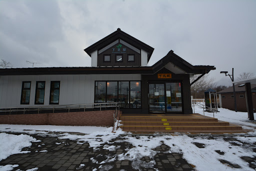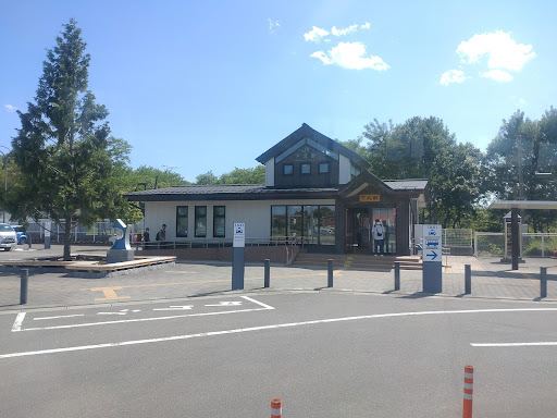 深夜バスで東京駅から本八戸駅、法霊山龗神社、長者山新羅神社、根城跡の八戸観光を経て、八戸駅より野辺地駅経由で恐山観光のため下北駅。 単線ローカル線で、行きは山側に木々の濃い緑、海側には陸奥湾、その先に津軽半島の陸地が見える。 下北駅を降り、座席確保のため駆け足で恐山行のバスに向かうも、乗客は自分を含め2人のみ。 バス車窓から見る下北駅の駅舎は新しく綺麗。