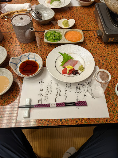 Read moreAfter spending the whole day in Nara, worn out by temple visiting (and we diligently visited many) and by thousands of people, we arrived at Akameguchi station in the dark. Without knowing a word of Japanese I started a chain reaction of unbelievable hospitality and friendliness when i called the Sansuien Ryokan from the train station public telephone. Within minutes my 2 year old daughter and myself as well as our backpack were safely tucked into a car and driven to this gem of a ryokan. When the taxi door opened again three japanese bowing ladies were guiding to our "river house" and again minutes later we were already sitting in the wonderful onsen, marvelling at our luck to be here. We stayed 2 nights and so the next morning we were driven to the start of the 48 waterfalls walk, which we followed for about 3.3km until the gankutsu taki fall. For all the parents out there, my daughter walked the whole way up and i carried her down in an ergobaby carrier without any problems. ||In the evening the food was prepared in our room and while we were ushered into a private family bath our futon were prepared. We fell asleep to the murmuring sound...