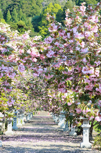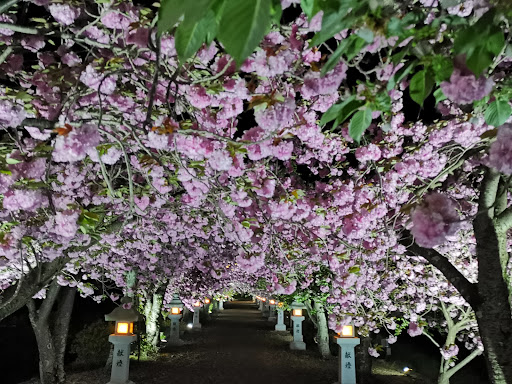 Read more期間限定ですが、寄り道する価値は十分アリ。神社まで両側の八重桜が圧倒的ボリュームで視界に入って来ます。朝のうちの訪問が人も少なくオススメします。 地元の方に夜のライトアップも幻想的と教えて頂きました。 砂利道ですので歩きやすい靴は必須なのと、花に惹かれて蜂が飛んでますが、攻撃的なスズメバチではありませんので😃 あと、駐車場はありますが、交通マナーを守って地元の生活道路を邪魔しないようにしましょう。 来年も観てみたいのでささやかですが寄付させて貰いました。今年は雪の重みで枝が折れたりしたそうですが、是非とも来年も見...