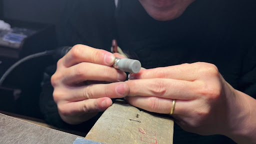 その後、オーナーさんにリングのロウ付けや、再調整を行なって頂いてから、オーナーの拘り作業を伝授して頂き、形を整えて磨き作業へ。。。