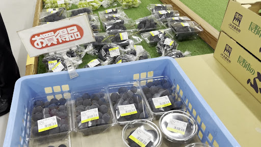 今回は、朝イチにこちらのお店に立ち寄ったので、とてもお得なお買い物ができました。 シャインマスカット、大粒のものが¥880でした。 クインニーナやながのパープルもありました。 朝イチのお買い得商品だと思いますので、売り切ったらこちらは終了ではないかと思います。