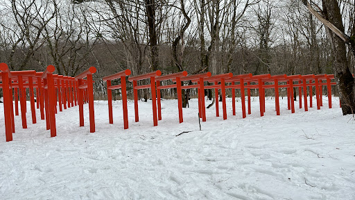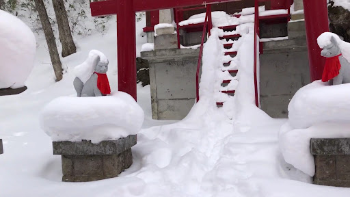 It snowed when we were there. Our guide also provided us with some light refreshments. The atmosphere was serene as the snow was not too deep. Though last year the snow covered to nearly the tops of the Tori...