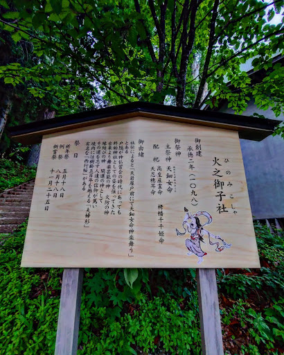 さて、【火之御子社】のお話をします❗ 祭神は、アメノウズメ様です❗ また、アメノオシホミミ様、タクハタチチヒメ様、タカミムスビ様と祭られています❗ こちらの神様方を祭っているのですから、【火之御子社】という漢字を充てるのではなく、【日之御子社】と書かれるべきかと思います❗ 【火】と【日】とでは、全く意味が違います❗ 「鬼滅の刃」というアニメでは、【ヒノカミガクラ】と言ったら時に【火之神神楽】なのか【日之神神楽】なのかを判断しにくいですよね❓ しかし、竈門炭治郎という漢字から想像すれば、【炭】ですし、【竈門】ですから、【火の呼吸】の達人だと理解できますね❗ しかし、耳飾りが日章旗ですから、【日之神神楽】の【日の呼吸】の達人でもありますよね❗(きっと?)