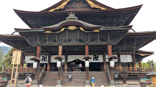 Read moreThe Sanmon Gate is a historic gate that has welcomed many worshippers into the main hall since its construction in 1750 during the mid-Edo period. The gate is five bays, three doors, and two stories high, with a gabled, thatched roof, and is designated as an Important Cultural Property of Japan. The foundation of the building was damaged by the Zenkoji earthquake of 1847 and the Matsushiro earthquake swarm in the 1960s, and as the gate itself had deteriorated overall, it underwent the Heisei Great Repair, the first major restoration work on the Sanmon Gate, which took place over a period of approximately five years, from October 2002 to December...