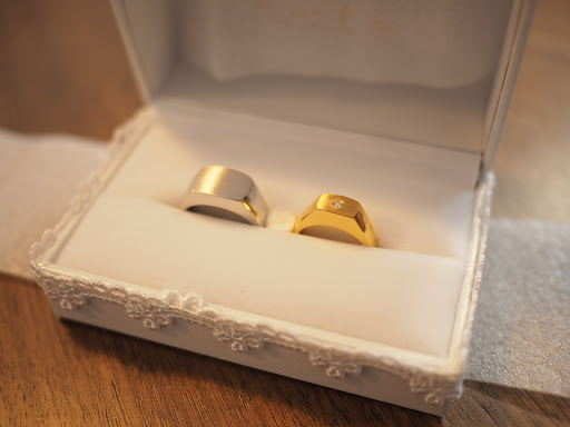 Read more結婚指輪に純金と純プラチナを使用して印台リングを2つ作成していただきました 元々指輪選びではブランドには魅力を感じず、素材の良さや製法、職人の高い技術によって仕上げられたモノを探していました。そこで鍛造製法に候補を絞りましたが市販の鍛造を謳ったリングは素材や製作者が不透明という点に魅力をあまり感じず、行き着いたのがジュエリーコウキ様でした。 実際に打ち合わせに伺う中で様々な縁を感じ、制作を依頼させていただきました 数ヶ月使用しましたが使用上のスレや打痕はあれど、純プラチナや純金による素材の強度は全く問題に感じていません これから先、何十年にも渡って使用し、着用者と共に素晴らしい経年変化をしていってくれると感じています。 今後は指輪の魅力に負けないような人物になろうと身の引き締まる思いです メンテナンスが必要になった際には、またお伺いさせて頂きます。 今後ともよろしくお願いいたします ーー 夫の好みで今回ジュエリーコウキ様に依頼をさせて頂きましたが、届いた指輪を見て品質やデザインの良さに私も大変満足いくお品物でした!長く一生を共にするものだからこそ、唯一無二の指輪に出会えて幸せです! 傷がつくのが恐れ多く、打跡が少しでもできるとあぁーてなりますがそれも全て味だと思って一生大切にいたします。 素敵な指輪をあ...