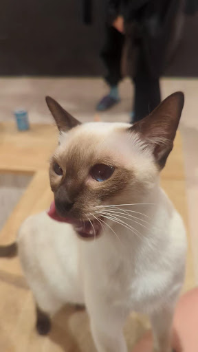 Read more先日訪問しました。 口コミを見て匂い面が少し心配だったのですが、猫ちゃんのおやつとかの匂いがするくらいで不衛生な匂いはしませんでした! お店に上がる階段が少し急なので、お年を召した方や小さいお子さんは大変かなと思います。 1時間2000円でおやつ付き、人間もドリンク飲み放題のプランがあったのでそれを選択。LINEの友達登録をして初回クーポンで10分延長してもらいました。 プランが安かったのでアイスキャンデーとおやつセット(チュールと固形おやつ)を買ってしまいましたが、よく考えたらおやつは既についてたからいらなかったかも、、、 飲み物はいちいち受付のフロアに取りに行かないと行けないのが不便に感じます。せめて3階入口あたりに置いてほしいなと思いました。(サービスもよくて猫ちゃんも可愛いのでこれが改善されたら星5です!)