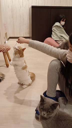 Lovely places with many breeds of cats! My daughter and I totally loved it and easily is a full 5 stars! Some of the cats were sleeping and looking lazy (but isnt that how most cats are! Lol), while any others are eyeing for the food when someone new walks in. The cost is about 1000yen per pax with a can drink and I felt the price was reasonable le but it was only for 30min. I felt that was too short and had to add 220yen for every 10min extra. We added 20min... And with that,I would have given 4 stars but somehow when I left after a full 50min, they didn't charge the extra time and only the snacks I bought, so I though it was still a pretty good deal eventually with us enjoying all the funny and cute fluffy cats! I will definitely be back here again and at the same time take a nice little...