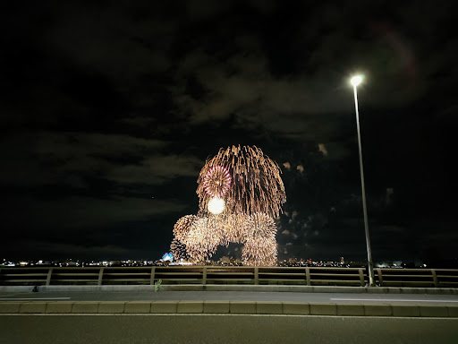 Read more名古屋みなと祭の花火を観に行きました! 名古屋港の対岸に位置しており、遮るものも特にありません。 音楽は聞こえませんが、全体感を見て楽しみたい方にはいいと思います。 歩道は南側にあるので車の通りが多いと少し気が散るかもしれないです。 駐車場は特にないので路駐さ...