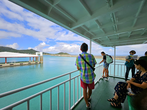 Small coral island, about 2 sq km, pop 300, 25 min ferry ride from Nanjo Town, Azama port. Highest point is about 3 m over sea level. Access to/from the ferry on the Okinawa side is fairly inconvenient with infrequent bus service to/from Nanjo city hall and no taxi stand at the port. Taxi can be called at Azama but availability can be limited, forcing a wait for the city bus. There are two ferries, the fast boat (passengers only) and a small car ferry. Fast boat takes 15 min to cross, car ferry 25 min. Tickets can be purchased at both ends, the fast boat is 90 yen supplement each way to the ordinary passenger fare of 1,300 round trip. Most visitors are day tripping to ride rental bikes around the island. Bike rental is cheap from a choice of 3 shops just above the ferry pier. The entire island can be walked in 3 hours, biked in 2 hours depending on how much time sightseeing. The North side of the island has a few ancient water wells along the coast with access from improved stairs that lead to beautiful ocean views. “Romance Road” on the north side has a nice view of Okinawa and is worth visiting. The northern most point, Cape Kaberu has incredible vistas of the off shore reef with lots of sharp coral. The south shore has sandy coral beaches, protected by an off shore reef. There are a few places to eat and drink and vending machines located in the village. Overall worth a visit for a nice day on a remote island. But...
