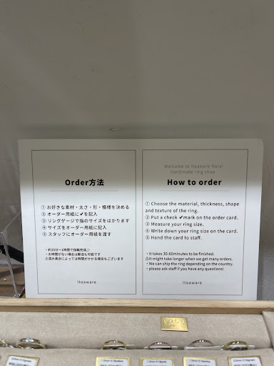 My partner and I walked in when visiting Nara and we were able to get an appointment for custom rings within one hour as the available slots were conveniently listed outside of the shop.