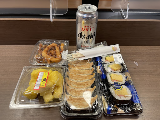 Go near the end of the day and the ready-to-eat items will be marked down. We usually went here to get drinks or sandwiches—the egg sandwiches are so good! The fruit sandwiches with cream were also delicious and made a light dessert snack. They put a third bread slice in the middle sometimes, probably to even out the space inside.