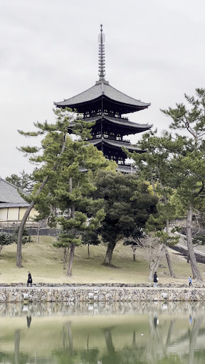 The Sarusawa Pond was created in 749 and is surrounded by the grounds of the Kofukuji Temple. The five storied pagoda of Kofukuji Temple is a picturesque backdrop to the outline of willow trees that circle the reflective lake.