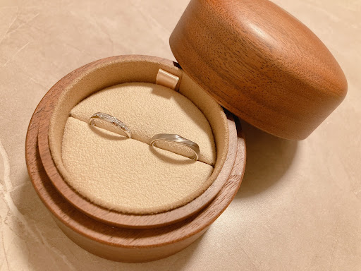 ホームページに記載がある通り、予約制の『他のお客様と重ならない』プライベートサロンのため、周りを気にすることなく予算やサイズのことなど相談しやすく、たくさん並んでいる指輪の中から気になった指輪を数限りなく、実際に手にとってじっくり指輪選びをすることができました。 手にとった指輪はそのまま戻さず、ベロアのアクセサリートレーで「候補の指輪」と「候補外の指輪」に分けて置くため、それぞれの好みが大体分かってきたり、「候補外の指輪」は丁寧に拭いて戻してくれているので、衛生的です◎