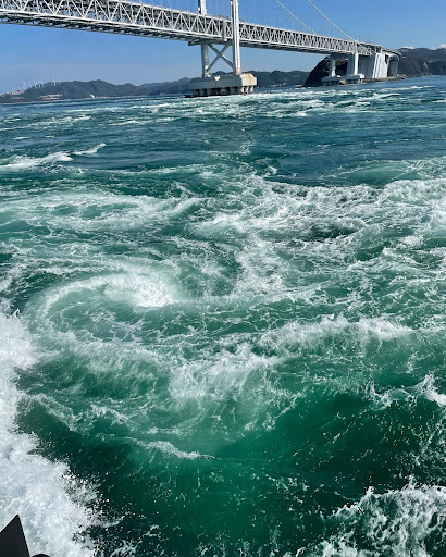 Read more一度は見たかった渦潮。 見る方法は主に二通り。 ①船 ②橋から まず、船について。 徳島から出る船と、福良(淡路)から出るものがある。淡路から出るものは、当日乗れる咸臨丸、そして1週間前くらいには要予約の船がある。なお、要予約の船は渦潮の水中の様子をみることができるものである。 咸臨丸は、予約もできるため、渦潮が見られる期待度が高い日時のものは1ヶ月以上前から予約満席のことも。 私は、前日に予約をしたため咸臨丸にした。オンラインで、クレカ払いでできる。当日は駐車場を確保し、QRかざしてチケットを受け取り、出発の30分前にゲートに並び、場所確保…! 席は、一階から三階魔であり、ベンチ席もあれば空調聴いた席もある。出発してから所要時間一時間強。渦潮を間近に見る事ができるが、席によっては直射で暑いため、備えが必要。 ②の橋は、徳島側の駐車場から¥520くらい払って歩いて渡るものだそうです。私はそれは言ってないので、橋の口コミをみてください。