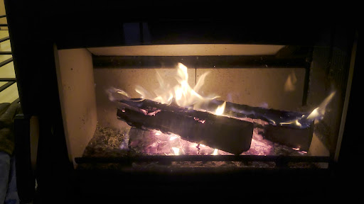 部屋 冷蔵庫、キッチンにはHコンロです。 鍋やフライパン、電子レンジ等一通り揃っています。 TV大きいです。ベットから見えるのは良いです。 特筆は暖炉有り。焚き火は心が癒やされます。