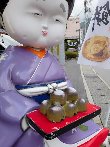 Read more家族旅行で立ち寄りました。温泉街を散策中、目に飛び込んできた大きなお人形。子どもとともに「こんにちは〜」とご挨拶すると、「いらっしゃいませ〜」と元気なお声。「大奥様」と呼ぶのがよろしいかな?笑顔で優しく対応して下さいました。その場でバラの品を購入し、指定の場所で食べさせていただきました。透明フィルムにぴったり吸い付く、柔らかくて繊細な饅頭の皮。ゆっくり剥がせば、しっとりとした可愛いフォルムの温泉まんじゅう。中にはあんこと栗あんがバランス良く入っていました。あんの甘さと饅頭生地の香ばしさが絶妙!本当に美味しい温泉まんじゅうでした。賞味期限が短いのが新鮮な証。保存ができないからこそ、大切な人に贈りたいお土産だと感じました。那須塩原の温泉街。そばを流れる川の音が心地よく、所々にある水栓が水の豊かさを感じさせる、ノスタルジックな雰囲気満載な温泉街でした。翌日、追加購入のために再度寄ると、若い男性の店員さんにご対応いただきました。後継の方かどうかは分かりませんが、こんなにも美味しいお饅頭、この先もずっと食べたいので頑張って欲しいなと勝手ながら応援の気持ちも…。 また必ず伺います。本当に美味しかったです。 ...