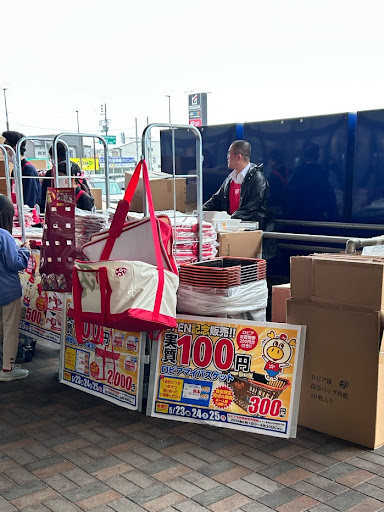 オープン3日目、初ロピアで大混雑を覚悟しながら向かうも10時頃で周辺道路や駐車場も空いていてあっさり到着で拍子抜け。入店待ちの列はあったものの小雨ということもあり客足が鈍ったのか5分程度で入店。先着1000個の実質100円という保冷バッグも山積みだったので大小2種類購入。