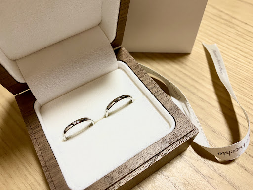 昨年8月ごろ、結婚指輪について何も知らないまま、思い切って一真堂桜木インター店を訪れました。前日に少し調べ、さまざまなブランドがあることだけは知っていたものの、入店する際は正直とても緊張していました(汗)。幸いなことに、店員さんがとても親切に対応してくださり、丁寧に結婚指輪の紹介や説明をしてくださったおかげで、安心して指輪選びを進めることができました。 10月には妻(当時はまだ彼女でした。。。笑)に新潟まで来てもらい(半分はライブを観るのが目的でしたが。。。汗)、一緒に一真堂桜木インター店に指輪の現物を見に行きました。その後、他のデパートのジュエリーショップにも足を運びましたが、やはり一真堂で見たロイヤル・アッシャーのデザインが最も印象に残り、とても気に入りました。10月下旬に、互いの名前の頭文字と結婚年月を刻印していただくようオーダーし、12月中旬に無事に受け取ることができました。