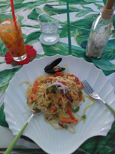 Read moreレストラン🍴ポセイドン 海を眺めながら、シーフードパスタランチ 美味しかったです! ムール貝、ホタテ、エビ、イカ、カニ たっぷり。 かいわれ大根、スライスオニオン、トマト スライスパプリカ、レッドキャベツ、万能ネギ等、ちょっぴりピリ辛で 食べごたえあります! サラダは、ひよこ豆等、 あっさりしていて、食べやすく やさしいお味です! 近くで、楽しみにしていた、山浦アイスコーヒー飲んだあとなので、 ランチのドリンクは、コクのあるマンゴージュースを選びました! デザートは 食べやすくカットされた、メロンとイチゴ 20年ぶりに食事しま...