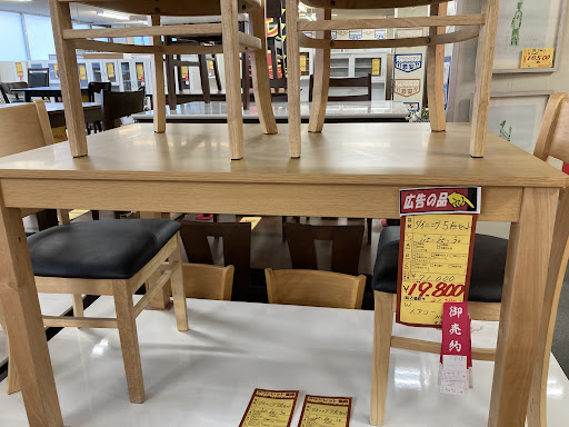 Read more新居に置く家具を探しに2回伺ったのですが、他の方のレビューにもあるとおり入ったらすぐ店員さんに声をかけられ、なんとなくあしらっても後ろをついて回ってくるので正直鬱陶しいですね。押し売りされているみたいで買う気が失せます。あと、店の広さに対して店員の人数が多い気がします。今のご時世、密にならないようもっと少なくてもしてもいいと思いますが。 品揃えはまあまあ良いし、表示されている元値が本当なら、格安で購入できます。 自分が行ったときはちょうど良い商品があったので比較的他の店よりも安く買えました。 一つ注意したほうがいいのが、購入するときはカードが使えないので現金でしか払えません。自分も財布に現金がなくて、急いで近くのコンビニから下ろして払いました。 ベッドとかソファーなんて普通に5万以上はするし安い買い物じゃないんだから、カードで払えるものだと思って、財布の中身を確認せずに行ったのですが、まさかキャッシュレス対応していないなんて。不便すぎ...