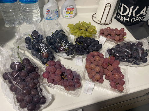 先客三名。色々な品種が並んでましたのでちょいちょい話を伺いながらナガノパープルと藤みのりをチョイス。接客も丁寧だった。。シャインマスカットも迷ったけど紫かぶり。