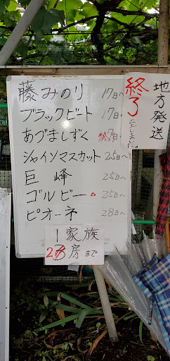Read more今日、『マイ・ハート』という名前のぶどうを買いました。味も良いけど、形が最高!👍👍👍 ここのぶどう、私も、孫も、すごく気に入っています。 実は、このすぐ近くに35年住んでいますが、こんな場所で作る(車が行き交う)ぶどうは、ちょっとと敬遠していました。5年ほど前、息子が買ったのを食べて、ファンになりました。 今年は、シャインマスカットとブラックビートを買いました。 大好きなぶどう園なので、地方の...