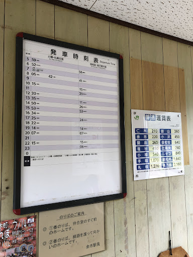 Read moreJR函館本線の余市~俱知安間にある無人駅です。本数は1時間に1本程度あります。駅舎内には駅ノートがありました。駅周辺には民家が立ち並んでいて、集落が形成されています。 駅から少し歩き、橋を渡ると、中央バスの「然別」バス停にアクセスできます。高速いわない号などが停車するバス停です。函館本線との接続は考慮されていないと思われますが、ここで乗り換えると列車とバスを両...
