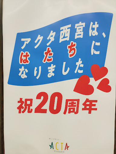 Read moreUntuk orang Indonesia yang tinggal di sekitaran nishinomiya, amagasaki, atau kobe. Tempat ini bisa jadi pilihan buat berbelanja. Karena fasilitas yang lengkap. Dari mulai super market sampai salon juga ada. Yang perlu diperhatikan di sini adalah ACTA punya dua gedung ya guys. Yang satu ACTA 東(east) dan satunya lagi ACTA 西(west). Kalo bingung tinggal liat gedungnya aja. Kalo ACTA 東 ini gedungnya lebih besar. Karena di dalamnya banyak fasilitas. Seperti supermarket, 100Yen shop, perlengkapan dapur, hingga starbucks dan mister donut ada di sana. Bahkan ada perpustakaan juga di lantai 5. Perlu diingat, kalo berkunjung hari senin tokonya banyak yang tutup.