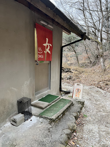 脱衣所は3畳くらいの感じで狭めですが 8人〜10人くらいを限度に入浴制限人数を管理人さんが コントロールしていらっしゃる(待ちがでたらここで待機。(壁のない待合室屋根はあるけれど風が入る(冬は暖を取るため七輪は炊いてくれている))ので そんなにも芋の子を洗うような入り方にはなりません。