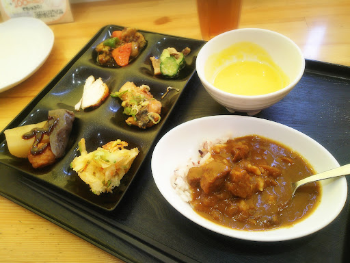 どれも地元の食材を使って作られていて、健康的なメニューばかりです✨ サラダは10種類はあって、たまに新しいサラダが追加されます👍️どれもヘルシー! たまごかけご飯があるの嬉しい💕ちなみにご飯は白米と18穀米があります🎵 なかなか普段食べれない18穀米でカレーを食べました😋この知多牛カレー美味しいですよ💓お肉が減りがちなのでカレーが追加されたら早めに取りに行くと良いです! 毎回たくさん食べるのが手羽元の煮物です😆💕柔らかくて濃いめの味で美味しい💕 なすの味噌炒めもなすがとろとろで美味しいです😋いつもあるので定番メニューなのかな? 今回初めて食べたのは、鯖の竜田揚げねぎソースです🎵これも美味しい!! あとはおでん、かき揚げ、肉じゃが、高野豆腐の煮物、里芋煮、大根のそぼろ煮、クリームパスタ、白身魚のフライがありました☺️ もち麦茶と赤だし味噌汁も美味しかったです👍️ 初めて100円でミニソフトを頼んでみました🍦結構量ありました!常滑牛乳を使用してるそうで、牛乳の味が濃厚でとても美味しい💕 満腹になりました~これで1000円は安い👛✨ 外にはレトロな手押しポンプがあり、子供が毎回押して水を出します😄なか...