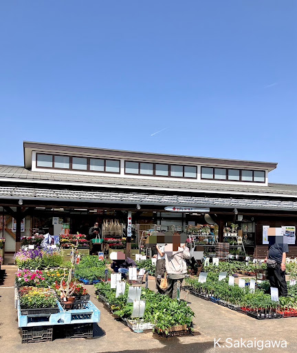 店先には花や野菜の苗がいっぱい売られています。時期的にもカラフルで見ていて楽しくなります。 店内には切り花をはじめ、地場産の野菜や果物、お肉に魚、お米、地方の食材などなど、バラエティに富んだ品揃えでした。
