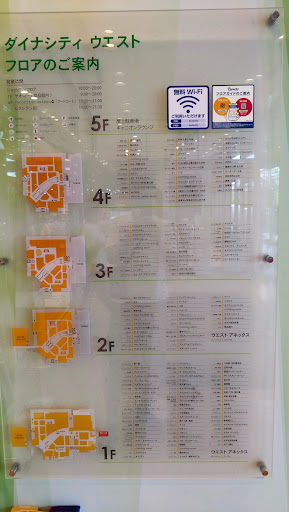 Read moreダイナシティウエストは最高でした。過去はロビンソン百貨店、西武百貨店でした。現在はダイナシティに統一されました。ダイナシティウエストのエレベーターのメーカーはフジテックでした。ダイナシティウエストのエレベーターが変わりました。私としてはご対面でした。エレベーターのボタンが非接触になっていました。ダイナシティウエストのエレベーターの時代がやってきました。ダイナシティウエストのエレベーターの夜明けです!私はビックリでした。フジテックの非接触ボタン「エアータップ」です!グッドデザイン賞を受賞されました!液晶がついていました。とても良い体験でした。エアータップとプラズマクラスター!プラズマクラスターはシャープです。エアータップはフジテック!ダイナシティウエストキャニオンラウンジにはテレビが設置されていました。メーカーは日立でした。WOOO(ウー!)でした。残念ながら日立のテレビは撤退されていました。ダイナシティウエストのテレビで流れているのはNHKの番組でした。フードコート、レストランは4階にございます。ダイナシティウエストの自販機はPASMO、Suicaなどの交通系IC...