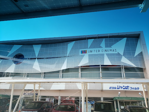 ユナイテッドシネマのロゴマークのアーチが付いてる階段で上に上がると入り口があるが、一階にあるボーリング場に入口入ってすぐ横にはエスカレーターがあるので、そっちから行くのが楽です。 ちなみに、降りる側のエスカレーターは動いてないので、階段のように降りる仕様。 故障してるわけでは無いし、歩くように作られてないので歩き辛いしなんだか怖い。