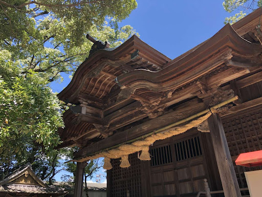 御本殿等 ○本殿六坪、幣殿十五坪、拜殿十坪。 ○欽明天皇、天武天皇、宇多天皇、鳥羽天皇、高倉院の御宇再興。 ○文明二年、領主筑紫貞門再建。 ○天正十四年、兵火に罹り社殿、宝物等悉く焼失す。 ○天和二年、領主有馬伊豫守豊範、正殿拜殿再建(現在の御本殿也)。 ○其の後、造営材木は旧久留米藩より、雑費は御井、御原両郡割符を以て仕来り也。 ○明治六年三月十四日、県社に列せらる。 ○平成元年、御創建二十五年毎(一七七五年)の式年大祭斎行、氏子、産子等の淨財を以て御本殿、渡殿の修覆工事完成。 ○平成四年、台風十七号及び十九号の被害により拜殿の修復工事完成。 ○平成二十四年御本殿渡殿の銅板葺き替え及び修覆工事完成。 ○平成二十五年御創建(一八〇〇年)式年大祭斎行。