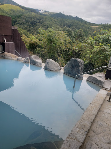 上の写真は女湯大浴場です。 まず、温泉自体はコバルトミルキーブルーでいいです。すこしツルっとする感じでお肌の保湿によさそうな泉質です。 風呂上がり、佐賀のいろはじまにいったとき、「流さないで下さい。保湿成分が流れます。」とのことだったので、こちらも保湿成分があるということでしたので流さず上がると、すこしはだが粉っぽい感じがあります。 嫌な方は、流して上がられた方がいいかと。 解放感あり、山を見渡せますが、シャワーも風避けなどなにもないので、冬は超絶寒いです。ゆっくり浸かってからあがるとポカポカします。