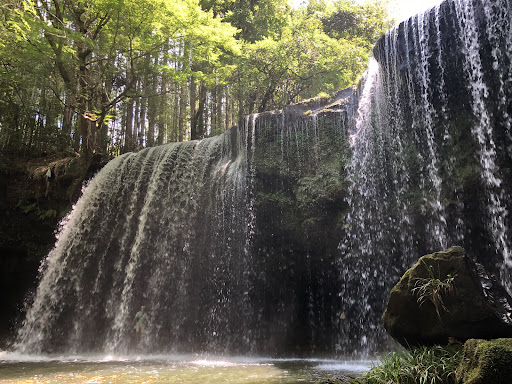 Read moreカーテンのように幅が広く木漏れ日の中で水が落ちるのが美しい滝。滝の裏が広く滝を裏側から見られる。滝の水に触れることも。落差約10m、幅約20mの滝で、 お茶のCMのロケ地にも使われた。真冬には滝が凍結する。黒川温泉のさらに先で秘境的存在の滝。Instagram映え度満点💯