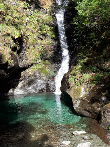 2022.1 県17沿いに看板とトイレが併設された駐車スペースがあります。川側の展望スペースから見上げると遠望できます。直下へ行くには駐車スペースの脇にある階段から登山道を進みます。はじめ一気につづらに登り、やや平坦になりロープ場を越えた先で分岐がありますので右に折れて改めて登っていきます。一応写真も載せていますが、この分岐が、直進方向にも明瞭な踏み跡があり、双方にピンクテープがあるので時季によっては右に折れるのを見落とすかもしれません。右に登っていくと石垣の跡のような場所にでるので、小さな石段を上がり左へ折れて、奥から改めて登ります。登り口にテープがあるのでわかると思います。しばらく登りガレ斜面を登って左に折れると、あとは平坦に数分歩いて到着です。踏み跡も明瞭でテープも頻繁にあるので、右に折れる分岐さえ間違わなければあとは体力次第です。途中小休止を含めて35分程で到着しました。本瀑の下にも無名滝があり、見えたら適当にトラバースすれば行けますが登山道から外れますので道はありませんので、不慣れな方は本瀑のみをお勧めします。水量が期待でき...