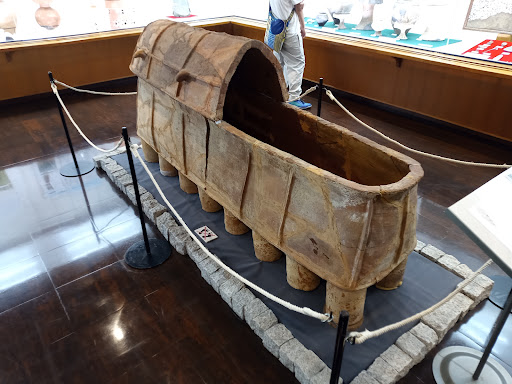縄文時代〜江戸時代までの遺跡出土品が展示されていて、中でも古墳時代のものが特に多かったです。土製の棺の展示があり、映像では石棺、石室の解説。