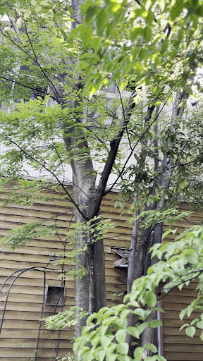 コンクリート打ちっぱなしの内装と、高い天井、大きなガラス窓から見える緑が調和して、とても落ち着ける空間です。
