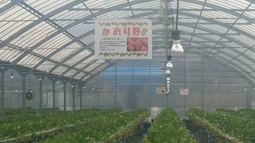 Read more食べ放題につられて、初めての来園です。3ヶ月前からWEBで予約可能でした。GW明けから1000円になるとのことでしたので、はやくから予約してこの日を心待ちにしていました。いちご狩りは9時から16時までです。勿論9時からの予約です🤗🍓産直マルシェ内で受付と会計を済ませます。その時のレシートは説明を聞くときに必要なので、手に持っていて下さいね。そう言えば、ナビで到着した際に産直マルシェ専用🅿️に車を停めてしまったのですが、いちご狩り専用🅿️に移動をお願いされました。行き方も丁寧に教えてくれましたし、すぐ近くなのでご心配なくです。説明を聞く前に予約名とレシートを渡し、🍓のカワイイワッペンを貰います。目立つところに貼って下さい。説明を聞いた後でいざ、ハウスへ。来園した日は4番ハウスでした。大粒の🍓がまたまだ沢山あって、練乳も付け放題で、幸せ〜🥰2番ハウスには[皆足姫]と言う品種があり、移動も可能ですが、練乳は持ち込み禁止でした。とっても甘くて美味しかったです。飲食エリアがあって、椅子も置いてあるので、そこで食べるのなら、練乳付けても🆗でしたよ。2番ハウスは棚ではないので、中腰での🍓狩りとなります。かおりの、紅ほっぺ、ゆめのか、皆足姫と4種類の食べ比べが出来ました。私は、皆足姫をお腹一杯食べました😍皆さんもお好みの🍓を堪能して下さいね、お手洗いは産直マルシェ内だけでした。🍓だらけのお手洗いにビックリ(笑)産直市場には野菜やレンコンコロッケ、美味しそうなパンもありました。パンを購入した人は珈琲のサービスもありましたよ。ラインのお友達登録しておくと、1000円以上購入で、300円オフのクーポンありです。マルシェで買った物は🍓狩りしながら飲食エリアで飲食出来ます。時間を気にしなくて良いので、のんびり出来ました🥰