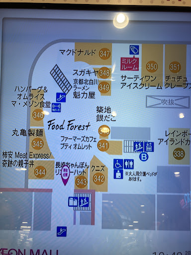 ③ 小さい子用の施設、授乳室やトイレなどについて。今はコロナで遊び場は閉鎖しています。需要はありそうなので作ってほしいですが、長久手のイケヤみたいには託児はないですね。キャラクルカートはレストラン街の柿安の近くの出入り口とか、4階とか5階とかに置いてあることがありそうです。子どもが乗れる物は、出入り口によっては見つからない、土日昼だとないことがあります。1階のレストラン街のトイレは1歳ごろからの年齢ごとのトイレが3つあります。大人のトイレとは近いですが、コーナーは別です。体重計、おむつ替えコーナー、ミルク作るためのお湯、授乳室3部屋があります。2階は、イオン直営店のほうにマタニティや子ども用品がある売り場があり、その近くにはたくさんの授乳室、体重計、おむつ替え、子連れ少し休憩コーナーがあります。フードコートとサーティワンの間にミルクルームがあります。子ども用品はそれなりに充実していますね。イオンスーパーには離乳食以外にも魚の骨取り済み魚などもあります。季節によっては、入園グッズ特集があったり、服も高くないものもあったりおもちゃもあったり。専門店側のユニクロ、GU、ダイソー、無印などファミリー層に人気のショップも多いですね。ここから五分位でいけるブックオフは大きいリサイクルショップで、子ども用品の中古が多くてお勧めです。子ども用品の新品は赤ちゃんデパートまで行った方が安く手に入るものもあります。 色々他にも私は子連れ関係書いてるのでよければ私のマークから見てください。