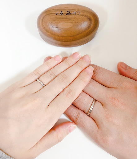 この度はありがとうございました!とても素敵でしたので口コミを書きます。 旦那さんは手先の器用なタイプですが私は不器用で指輪を手作りするのに抵抗がありましたが、旦那さんの「折角買うなら一生付けるものだし思い入れのあるものがいい」という気持ちが嬉しくて、不安ではありましたが工房茶ぼうさんに伺うことになりました。