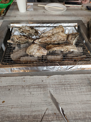 牡蠣小屋 牡蠣奉行に 少し早めに着いたら、並んていたので、順番待ち、待ち時間に説明あり、支払いは、現金 ペイペイのみ ゴミはセルフで指定場所へ トレーにお好みの食材を乗せてレジへ支払い後(読み込みペイペイ) 席に案内されて、牡蠣の焼き方説明 平らな面に先に焼く 片面3分 量面で6分以上焼いて欲しいとの事 牡蠣を焼いてる時は、蓋を被せ 貝殻が熱で、爆はつするので注意との事 蓋が熱くなるので、トングで取っ欲しい、軍手のみでは、火傷の事例ありとのこと! 割ってみて水っぽい場合は、もう少し焼いて欲しい、加熱用の牡蠣の為。