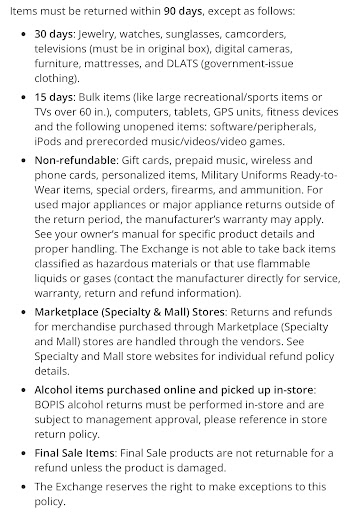 Went in to buy a small portable speaker, wanted something to play music while at home. There weren’t any small speakers but when I asked a associate if they had any in the back he pointed me towards the Rockbox XL, although a nice speaker it’s too big but the associate assured me if I didn’t like it that I could return it within 90 days, so I purchased it. I realized my mistake and it’s just too big and impractical for me. I brought it back within 90 days of purchase and was told I couldn’t return it due to a 15 day return policy on portable speakers?? Lady couldn’t even point to me where the policy outlined speakers. Now I’m out $180 because I was lied to. Shortly after purchase I found the same speaker on Amazon for $120 shipped… if you ever need electronics and are on the fence about it; I strongly recommend using Amazon, the convince of buying at the BX isn’t what it once was and they could lie to you like...