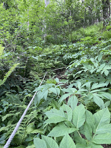 乳房杉の東にある登山口からスタート。山頂まで約1km、30〜40分。狭い道だが踏跡は明瞭で登りが中心となる。部分的に崩落しており歩きにくい所や若干傾斜が強めの区間もある。補助ロープは設置されているので概ね危険を感じる事は無いと思います。