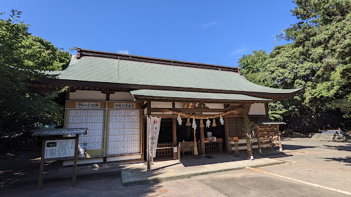 Read more『延喜式神名帳』にある「服織田神社(遠江国・蓁原郡)」に比定される式内社(小社)の論社。近代社格では県社。平安時代の承和元年(834年)3月、遷座の神託があり、適地を探し、承和4年(838年)2月、現在地に遷座した。旧地には駒形神社が鎮座する。 『延喜式』に載る白羽官牧の地と伝えられ、旧社地の駒形神社は、往古沖で遭難した90頭の馬の内1頭が岸にたどりついた地とされる。 社宝として、武田家朱印状「信玄印判状」「勝頼印判状」「勝頼印判状禁制」の3通が現存、市の有形文化財に指定されている。 現在の本殿は、江戸時代中期から後期に建立されたと推定され、入母屋、こけら葺、桁行3間、梁間2間。市の有形文化財に指定されている。