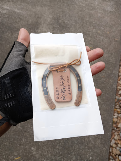 Read more静寂の祭り前に来ました。 お守りが気になって見てみると 珍しい馬蹄型のお守り、バンドタイプ型馬育(ばいく)お守りがありました。 自分も人力バイクだから該当するでしょ。