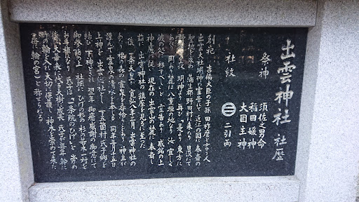 由緒書きをみると、やはり『出雲大社』と関係がありました。 大国主神(おおくにぬしのかみ) です。